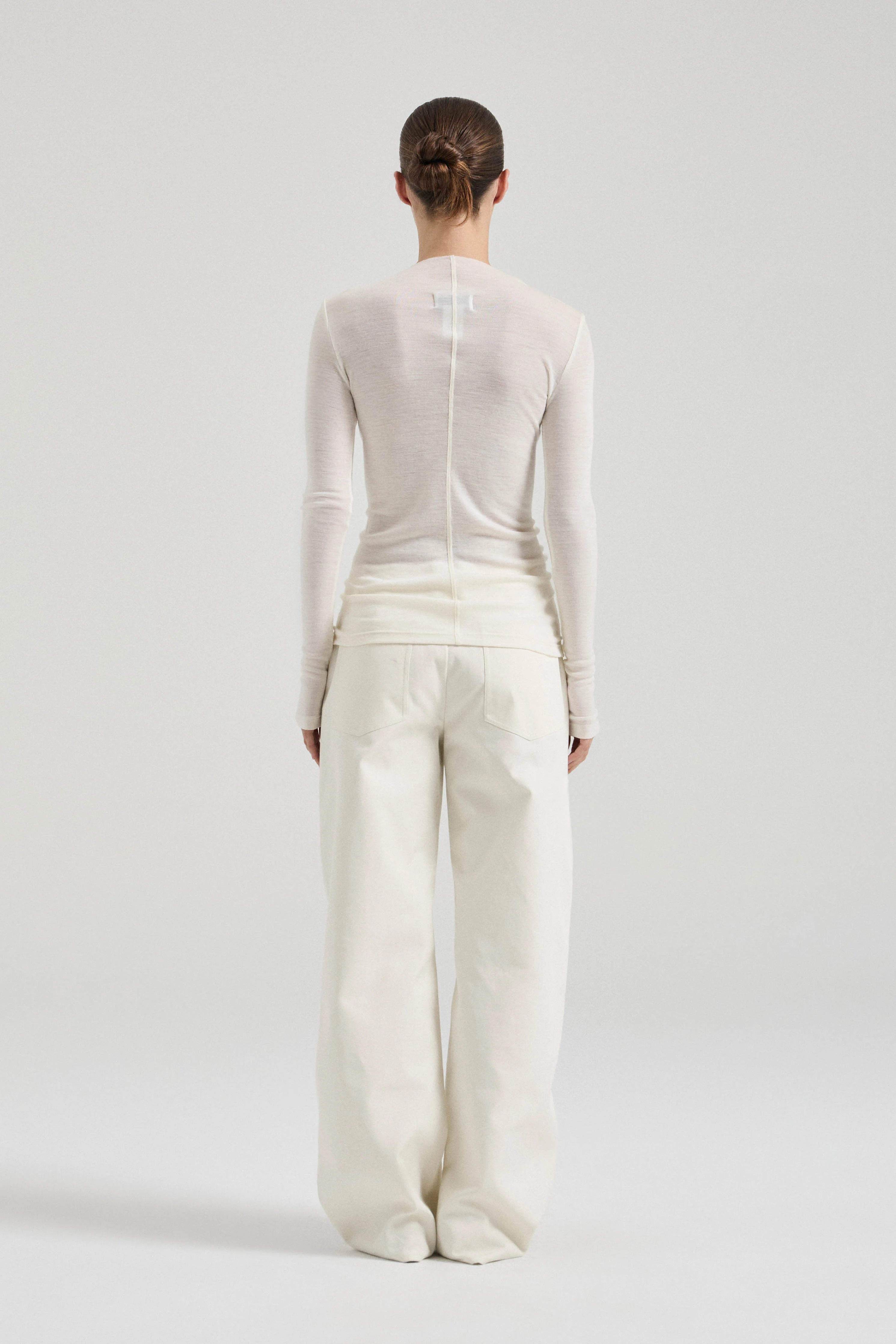 Mindfully made from superfine merino, the FWF Top is designed to be worn effortlessly with your closet classics. The semi sheer top features a raw edge high neckline, front and back seam detail and an embroidered FWF brand mark on the sleeve. Style on its own, or underneath the matching FWF Tank for a more interesting take on basics.